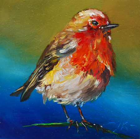 Opdracht olieverf "Ijsvogel" 15x15 cm